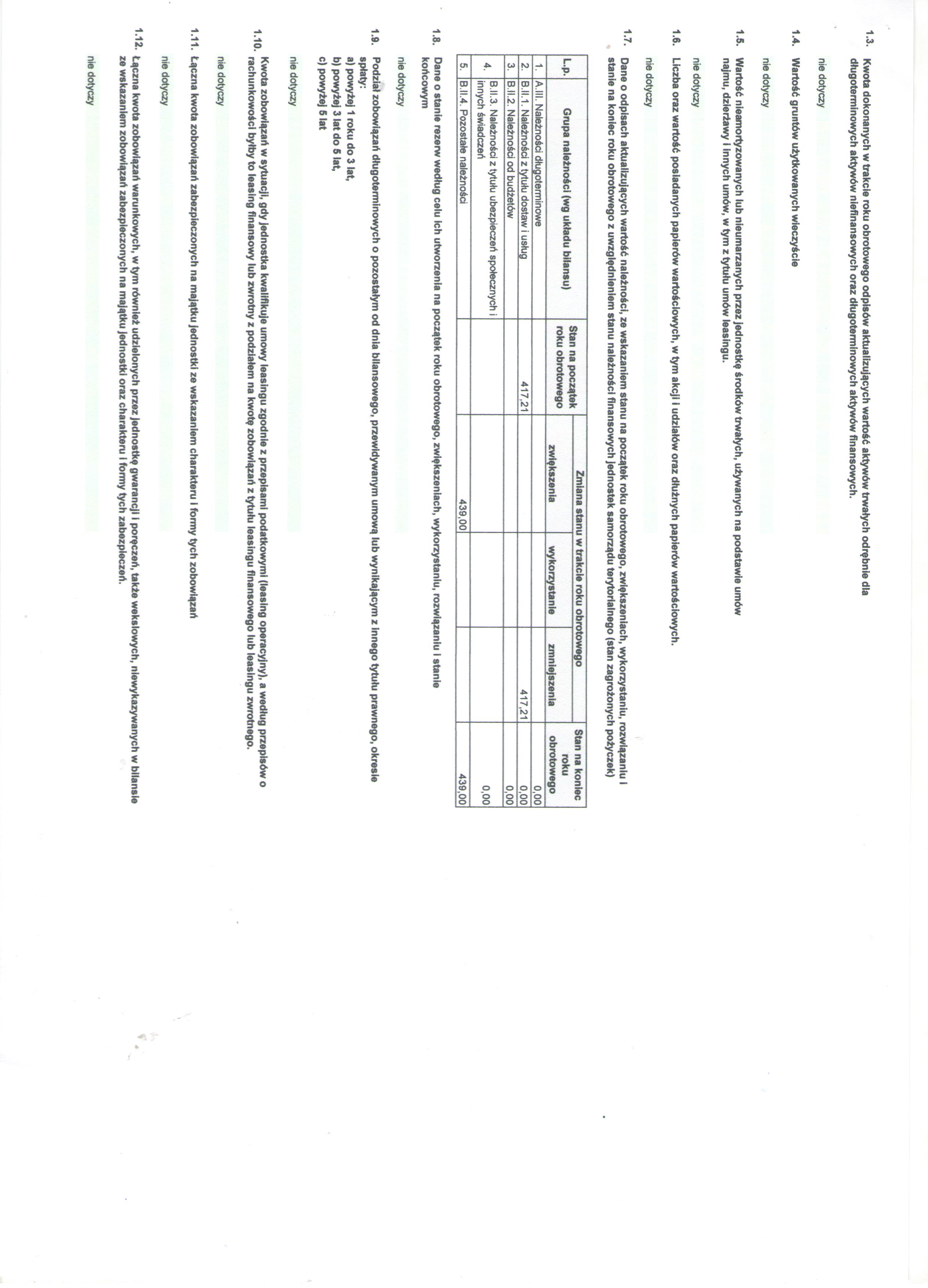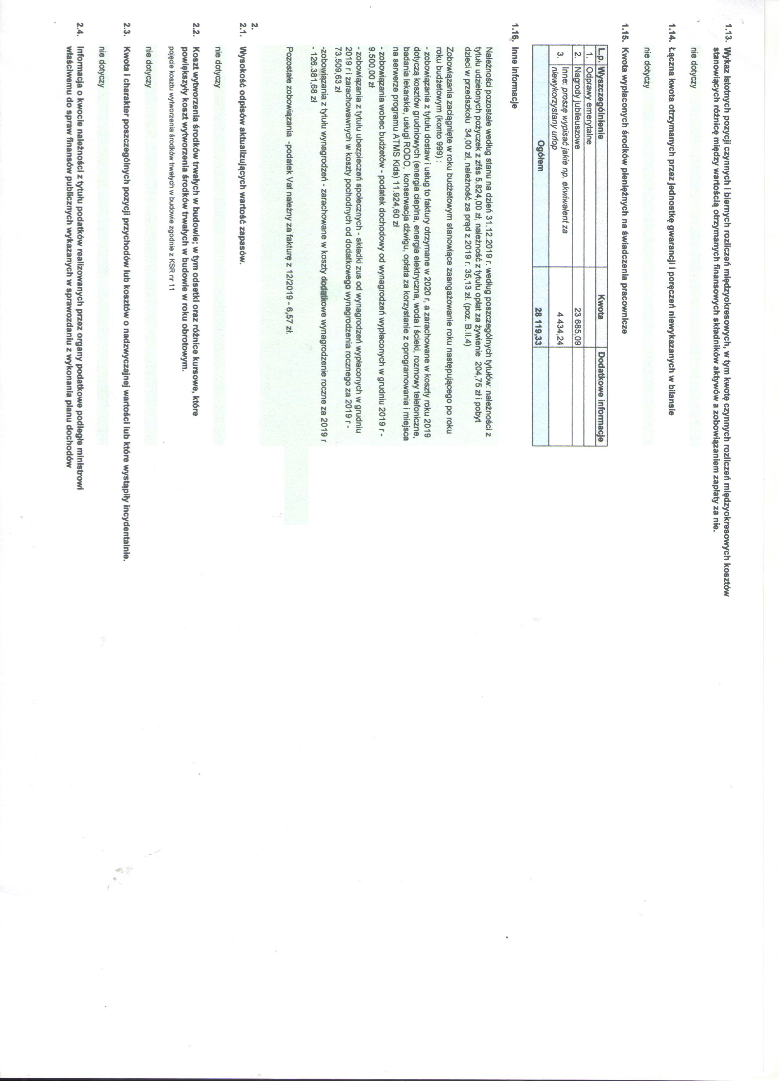 Sprawozdanie finansowe za 2019 rokUtworzono: 05 lipiec 2020 | Poprawiono: 05 lipiec 2020 | Opublikowano: 05 lipiec 2020 | Izabela Sikorska | Drukuj | E-mail | Odsłony: 1679 Sprawozdanie finansowe za 2019 rok (...) Załączniki: bilans.jpeg[ ]878 kB2020-07-05 17:08 bilans skonsolidowany.jpeg[ ]687 kB2020-07-05 17:08 informacja dodatkowa 1.jpeg[ ]470 kB2020-07-05 17:08 informacja dodatkowa 2.jpeg[ ]661 kB2020-07-05 17:08 informacja dodatkowa 3.jpeg[ ]447 kB2020-07-05 17:08 informacja dodatkowa 4.jpeg[ ]471 kB2020-07-05 17:09 informacja dodatkowa 5.jpeg[ ]392 kB2020-07-05 17:09 rachunek zysków i strat.jpeg[ ]859 kB2020-07-05 17:09 zestawienie zmian w funduszu.jpeg[ ]738 kB2020-07-05 17:09