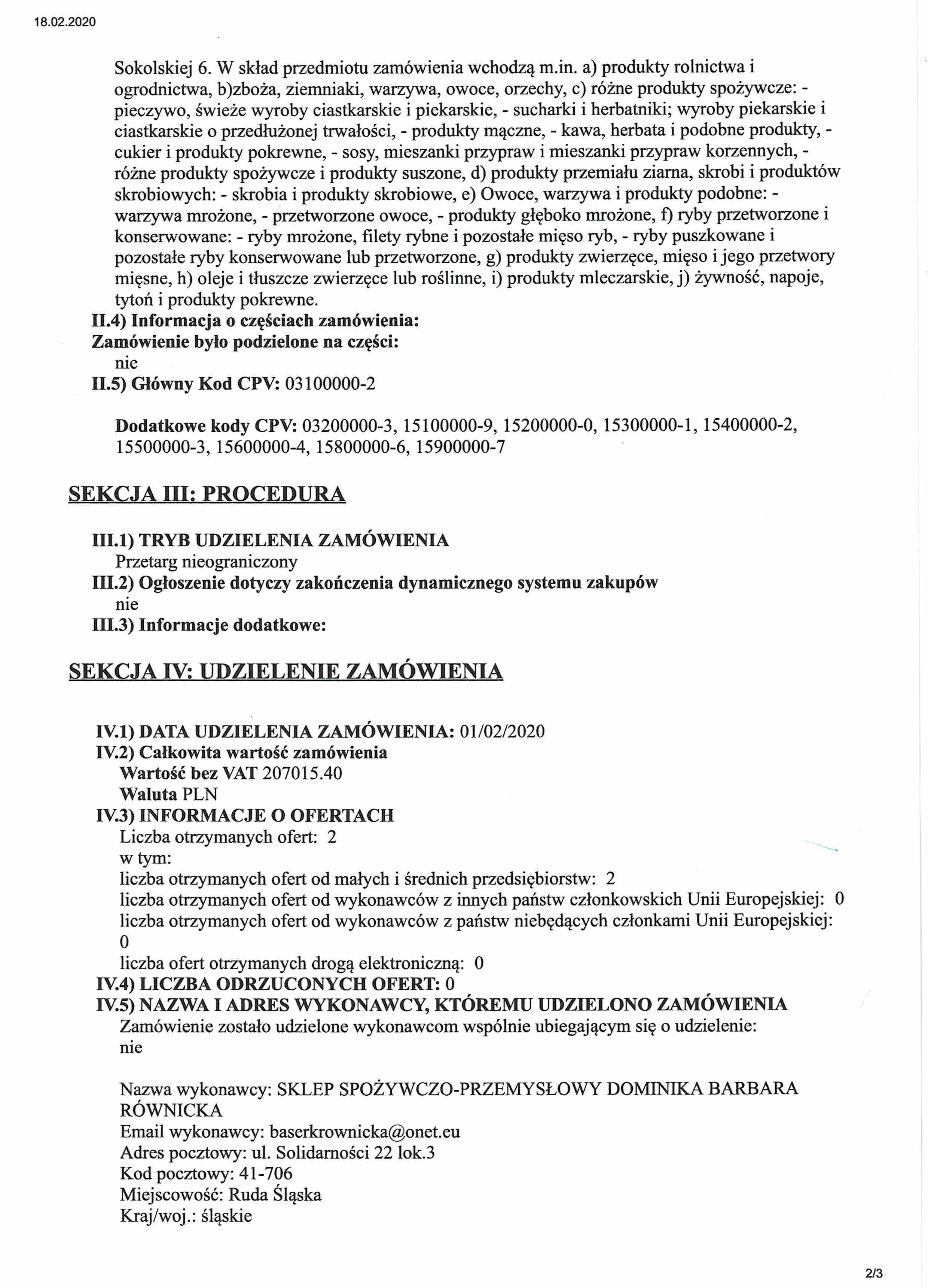 OGŁOSZENIE O UDZIELENIU ZAMÓWIENIA - Dostawy