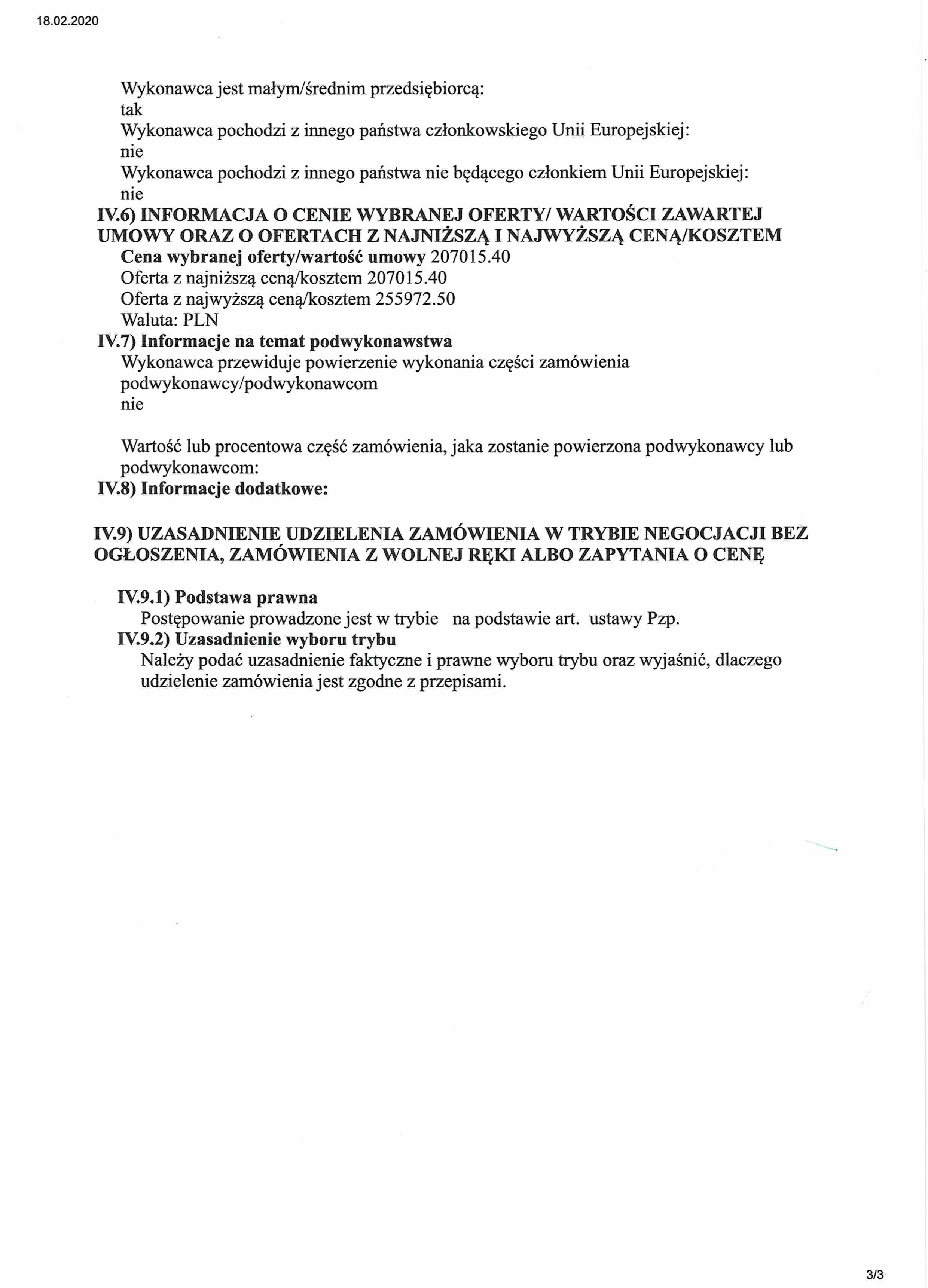 Ogłoszenie dotyczy: Zamówienia publicznego